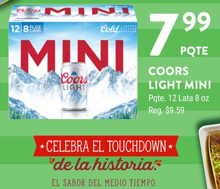 COORS LIGHT MINI Pqte. 12 Lata 8 oz.