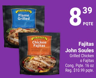 Fajitas John Soules Grilled Chicken o Fajitas Cong. Pqte. 16 oz.