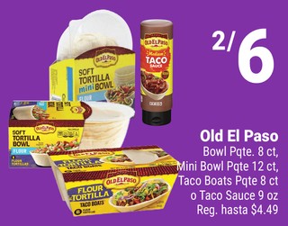 Old el Paso Bowl Pqte. 8 ct., Mini Bowl Pqte. 12 ct, Taco Boats Pqte 8 ct., o Taco Sauce 9 oz.