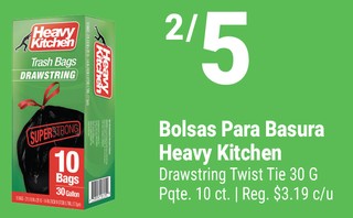 Bolsas Para Basura Heavy Kitchen Drawstring Twist Tie 30 G Pqte. 10 ct. | Reg. $3.19 c/u