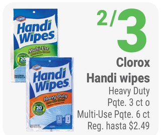 Clorox Handi wipes Heavy Duty Pqte. 3 ct o Multi-Use Pqte. 6 ct