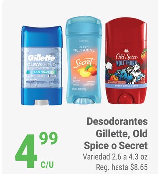 Desodorantes Gillette, Old Spice o Secret Variedad 2.6 a 4.3 oz.