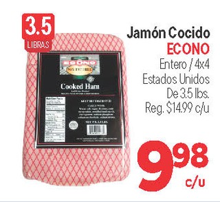 Jamon cocido econo entero / 4x4 estados unidos de 3.5 lbs.