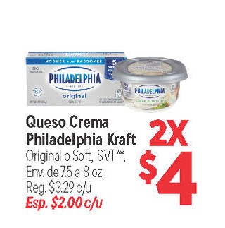 Queso crema philadelphia kraft original o soft, svt**, env. de 7.5 a 8 oz.