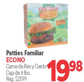 Patties Familiar ECONO Carne de Res y Cerdo Caja de 6 lbs.