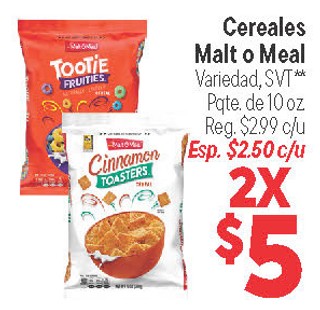 Cereales Malt o Meal Variedad, SVT** Pqte. de 10 oz.