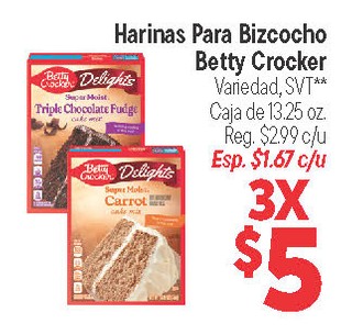 Harinas Para Bizcocho Betty Crocker Variedad, SVT** Caja de 13.25 oz.
