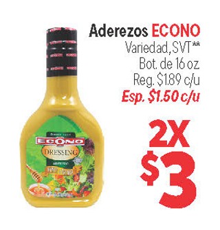 Aderezos ECONO Variedad, Bot. de 16 oz.