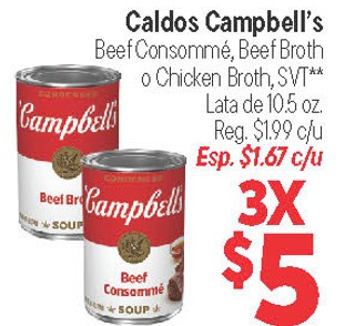 Caldos campbell´s beef consomme, beef broth o chicken, svt** lata de 10.5 oz.