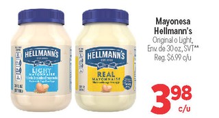 Mayonesa hellmann´s original o light, env. de 30 oz., svt**