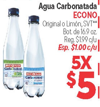 Agua carbonatada econo original o limon, svt** bot. de 16.9 oz.