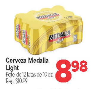 Cerveza medalla light pqte. de 12 latas de 10 oz.