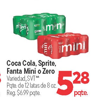 Coca Cola, Sprite, Fanta Mini o Zero Variedad, SVT** Pqte. de 12 latas de 8 oz.