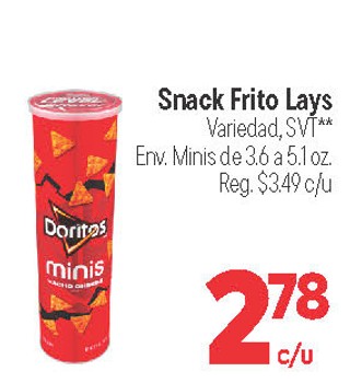 Snack Frito Lays Variedad, SVT** Env. Minis de 3.6 a 5.1 oz.