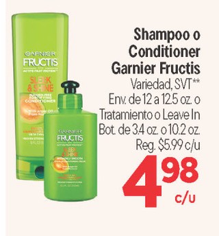 Shampoo o Conditioner Garnier Fructis Variedad, SVT** Env. de 12 a 12.5 oz. o Tratamiento o Leave In Bot. de 3.4 oz. o 10.2 oz.