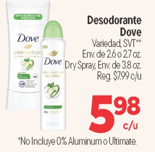 Desodorante Dove Variedad, SVT** Env. de 2.6 o 2.7 oz. Dry Spray, Env. de 3.8 oz.