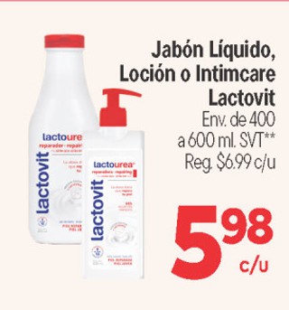 Jabón LÃquido, Loción o Intimcare Lactovit Env. de 400 a 600 ml. SVT**