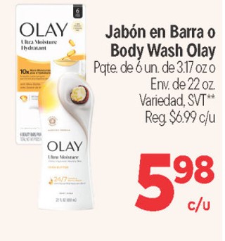 Jabón en Barra o Body Wash Olay Pqte. de 6 un. de 3.17 oz o Env. de 22 oz. Variedad, SVT**