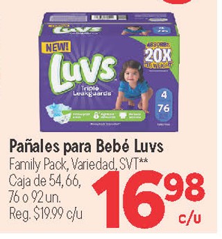 Pañales para Bebé Luvs Family Pack, Variedad, SVT** Cala de 54, 76 92 un. 66,9