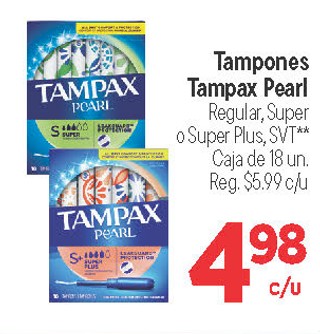 Tampones Tampax Pearl Regular, Super o Super Plus, SVT** Caja de 18 un.