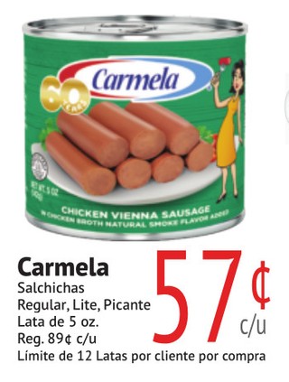 Carmela Salchichas Regular, Lite, Picante Lata de 5 oz.