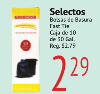 Selectos Bolsas de Basura Fast Tie Caja de 10 de 30 Gal.