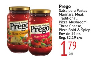 Prego Salsa para Pastas Marinara, Meat, Traditional, Pizza, Mushroom, Three Cheese, Pizza Bold & Spicy Env. de 14 oz.
