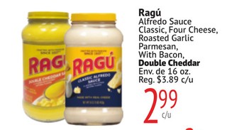 Ragú Alfredo Sauce Classic, Four Cheese, Roasted Garlic Parmesan, With Bacon, Double Cheddar Env. de 16 oz.