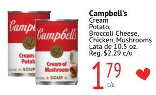 Campbell's Cream Potato, Broccoli Cheese, Chicken, Mushrooms Lata de 10.5 oz.