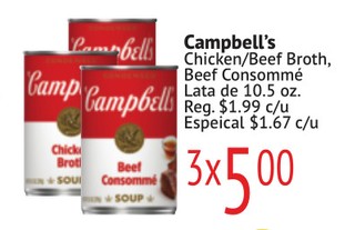 Campbell's Chicken/Beef Broth, Beef Consommé Lata de 10.5 oz.