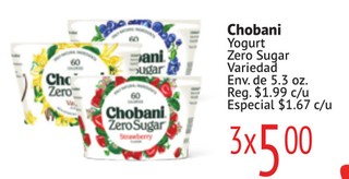 Chobani Yogurt Zero Sugar Variedad Env. de 5.3 oz
