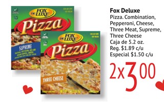 Fox Deluxe Pizza. Combination, Pepperoni, Cheese,
