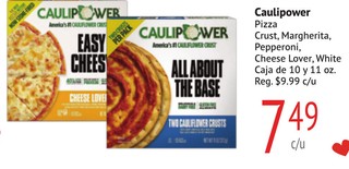 Caulipower Pizza Crust, Margherita, Pepperoni, Cheese Lover, White Caja de 10 y 11 oz.