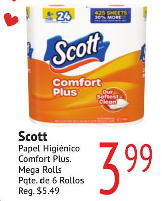 Scott Papel Higiénico Comfort Plus. Mega Rolls Pqte. de 6 Rollos