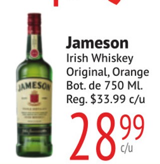 Jameson Irish Whiskey Original, Orange Bot. de 750 ML.
