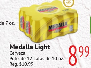 Medalla Light Cerveza Pqte. de 12 Latas de 10 oz.
