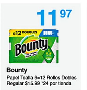doubles bounty papel toalla rollos dobles regular $*por tienda