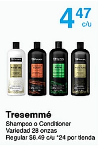 tresemmé shampoo conditioner variedad onzas regular $c/u *por tienda