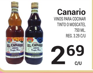 Canario vinos para cocinar tinto o moscatel 750 ml.