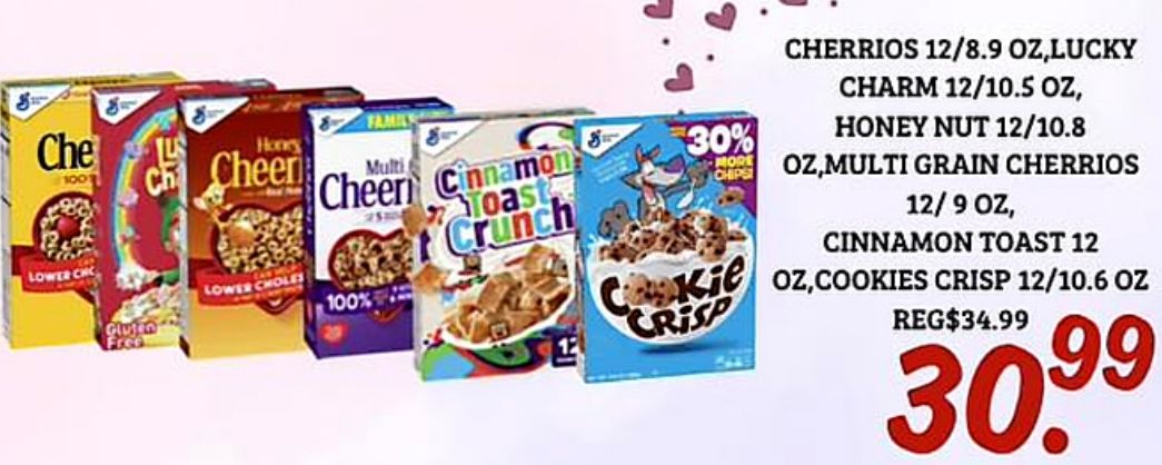 honey cheer famils multi lower gluten choles cinnamon toast crunch cookie crisp more chips cherrios /lucky charm /,multi grain ,cookies reg$