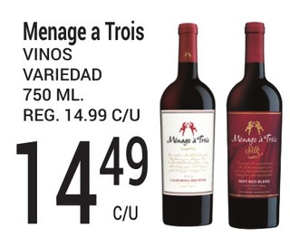 Menage a Trois vinos variedad 750 ml.