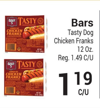 Bars tasty dog chicken franks 12 oz.