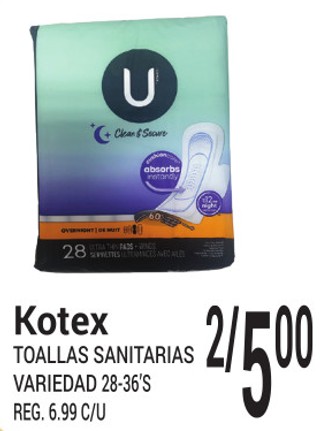 Kotex Toallas Sanitarias Variedad 28-36's