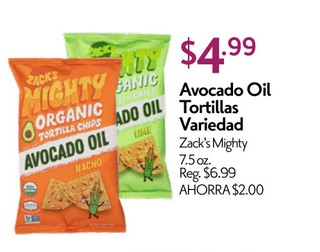 Avocado oil tortillas variedad zack´s mighty 7.5 oz.