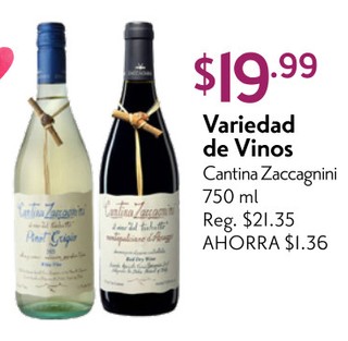 Variedad de Vinos Cantina Zaccagnini 750 ml.