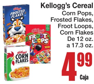 Kellogg's Cereal Corn Pops, Frosted Flakes, Froot Loops, Corn Flakes De 12 oz. a 17.3 oz.