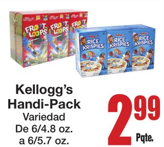 Kellogg's Handi-Pack Variedad De 6/4.8 oz. a 6/5.7 oz.