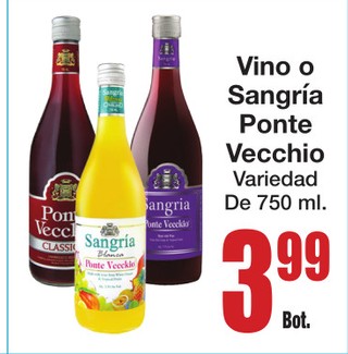 Vino o SangrÃa Ponte Vecchio Variedad De 750 ml.