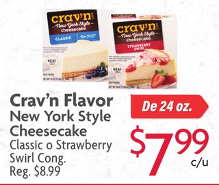 Crav'n Flavor New York Style Cheesecake Classic o Strawberry Swirl Cong.