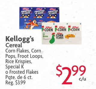 Kellogg's Cereal Corn Flakes, Corn Pops, Froot Loops, Rice Krispies, Special K o Frosted Flakes Pqte. de 6 ct.